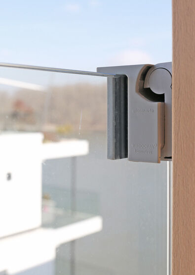 Vorgefertigt im Werk, werden die Glasgeländer-Module am Bau direkt in die am Fenster vorab montierten Grundplatten eingehängt – werkzeuglos. Die Befestigung an den Fensterprofilen ermöglicht einen Toleranzausgleich und nimmt die Längenänderungen durch Temperaturschwankungen an der Fassade auf. Im Regelfall werden GM WINDOORAIL® Glasgeländer für Französische Fenster an den senkrechten Fensterprofilen mit mindestens vier Befestigungselementen montiert. Die Montage erfolgt direkt auf den Fensterrahmen (Kunststoff, Holz, Holz-Alu, Aluminium oder Stahl).