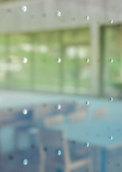 Vogelschutz kann auf vielfältige Weise in Glaslösungen mit Einscheibensicherheitsglas ESG und Verbundsicherheitsglas VSG integriert werden.