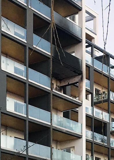 So auch in Berlin-Stralau: Vor einiger Zeit kam es dort im „Goldenen Haus“ zu einem Wohnungsbrand im 6. Stock. Der Balkon der Wohnung war durch ein GM RAILING® Ganzglasgeländer absturzgesichert, was maßgeblich zur Brandeindämmung beitrug. Die Baureihe aus dem Hause Glas Marte ist das einzige Glasgeländer, das sich im Ernstfall derart überzeugend live bewährt hat. Die Pluspunkte liegen klar auf der Hand: Zum einen wird durch die Transparenz des Glasgeländers ein Feuer schneller erkannt, zum anderen ist es geschlossen ausgeführt, wodurch sowohl die Luftströmung auf dem Balkon als auch der Brandüberschlag auf die darüber liegenden Balkone, die auch durch Glasgeländer geschützt sind, enorm erschwert wird.