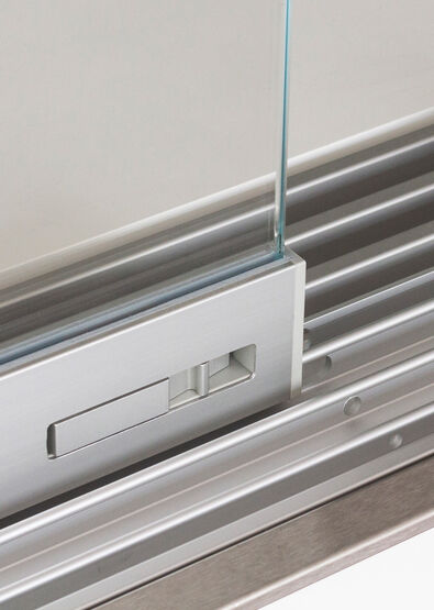 Neben dem Komfortpaket mit seiner Sperrfunktion lassen sich die Schiebetüren auch mittels Steckriegel oder Druckzylinderschloss zuverlässig verschließen. Eine weitere Verriegelungsmöglichkeit ist das Haken-Fallenschloss – bei 3–5-bahnigen Schiebeanlagen in Kombination mit einer Staubschutzleiste.