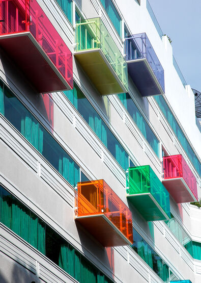 Das farbige Verbund-Sicherheitsglas GM VSG LAMIMART® COLOR bringt die Farbe zwischen die Glasscheiben: Spezielle Folien erzeugen eine enorme Bandbreite an transparenten, transluzenten oder blickdichten Farbtönen. Gleichzeitig sorgt der Verbundaufbau für zusätzliche Sicherheit und je nach Systemaufbau auch für Absturzsicherung. Farbiges VSG bietet sich überall dort an, wo Geländer, Brüstungen, Trennwände oder Fassadenelemente nicht nur gut aussehen, sondern auch schützen sollen.