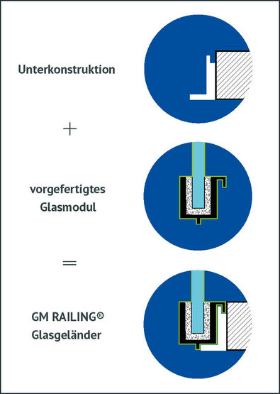 Das herausragende Alleinstellungsmerkmal der GM RAILING® Glasgeländer ist das einzigartige Modulprinzip. Die Geländer bestehen aus vorgefertigten Glasmodulen, bei denen Glas und Profil werkseitig fest miteinander verbunden und optimal gelagert sind, sowie einer perfekt abgestimmten Unterkonstruktion.